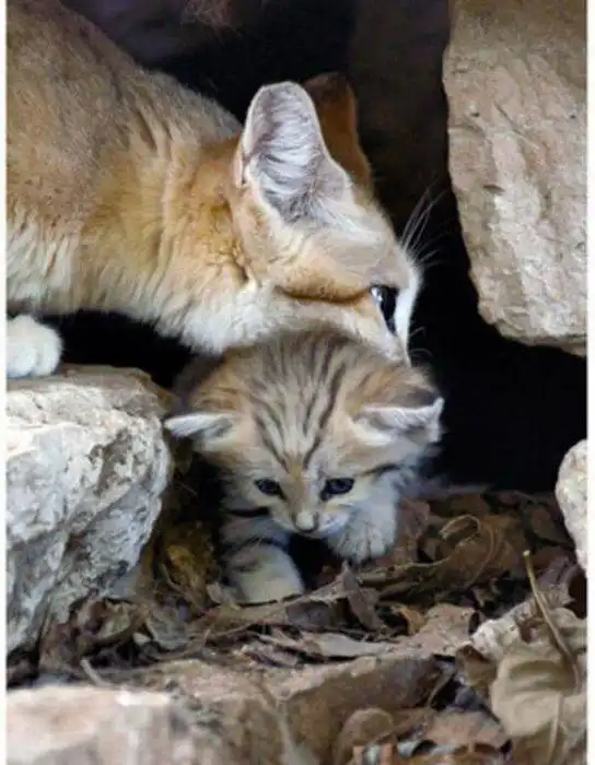 В парке "Сафари" празднуют рождение песчаного котенка.
