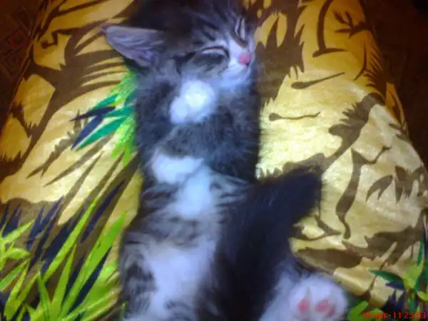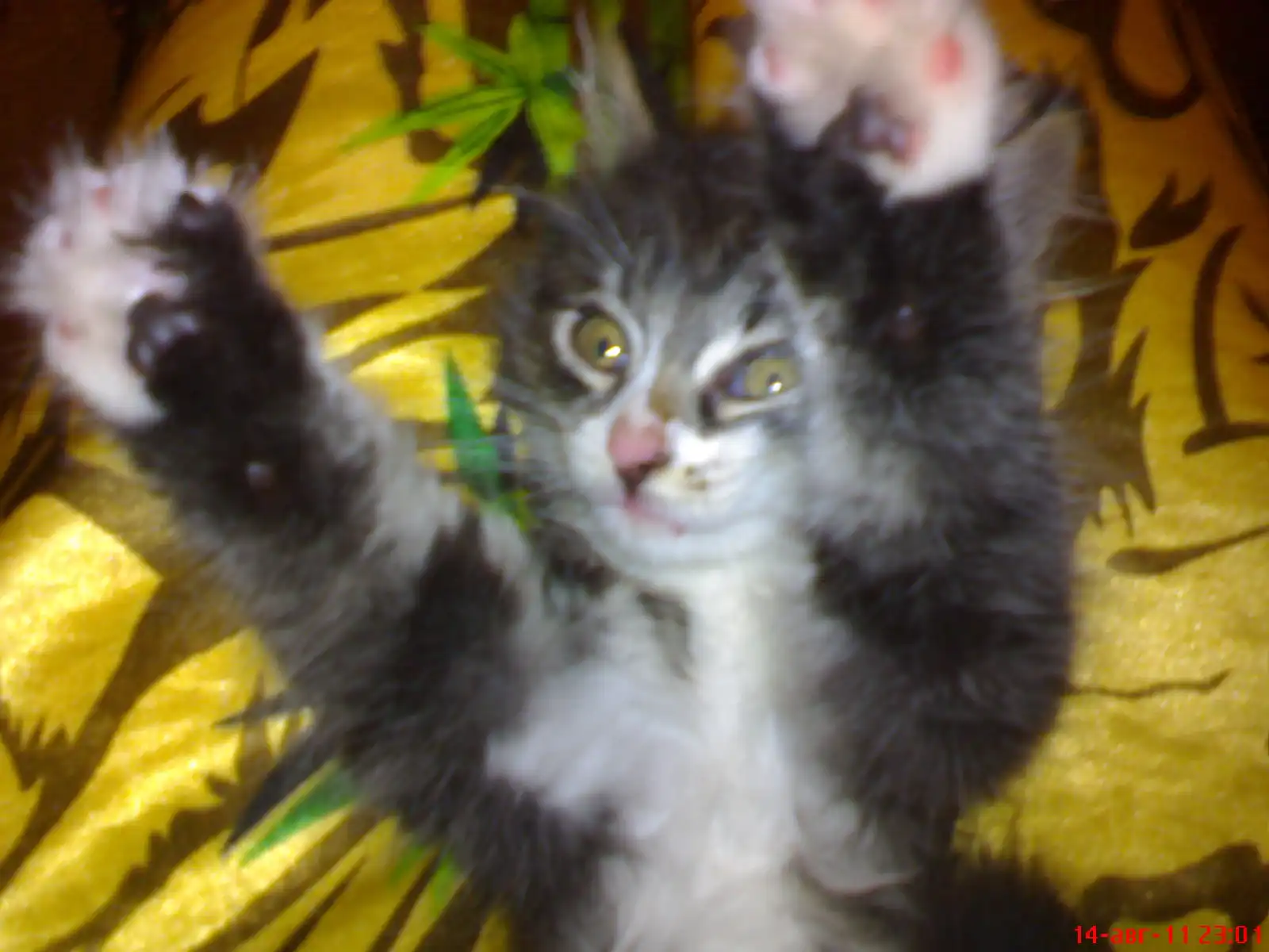 Котенка забросили нам на крышу,пришлось взять к себе на передержку, т.к. в этот же день, подбросили щенка и соседка себе взяла,хотя у нее уже есть собака.