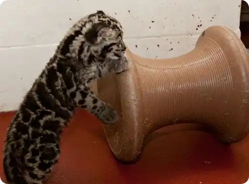 Чуть позже она присоединится к двум уже подросшим дымчатым леопардам, родившимся 28 марта.