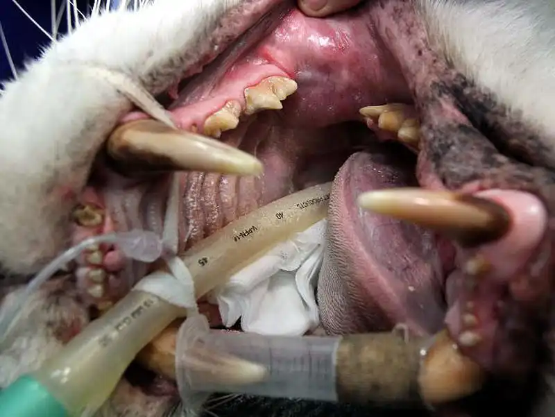 Следующие два часа он провел под наркозом, пока ветеринар-стоматолог Гэри Уилсон прочищал ему каналы.