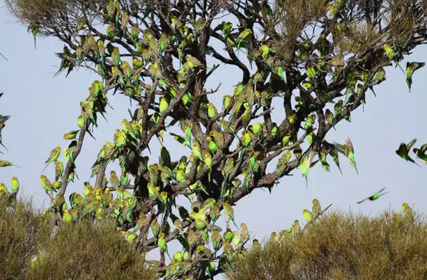 Стая попугайчиков в национальном парке «Nullarbor National Park» на юге Австралии.