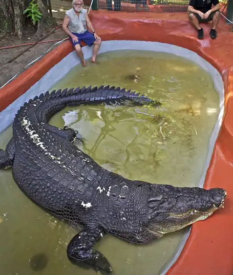 Джордж Крейг (слева) и крокодил Кассий, живущий а зоопарке в Квинсленде, Австралия. Кассий занесен в Книгу рекордов Гиннеса в качестве самого длинного крокодила, живущего в неволе. Его длина 5,48 метров, а вес достигает тонны.