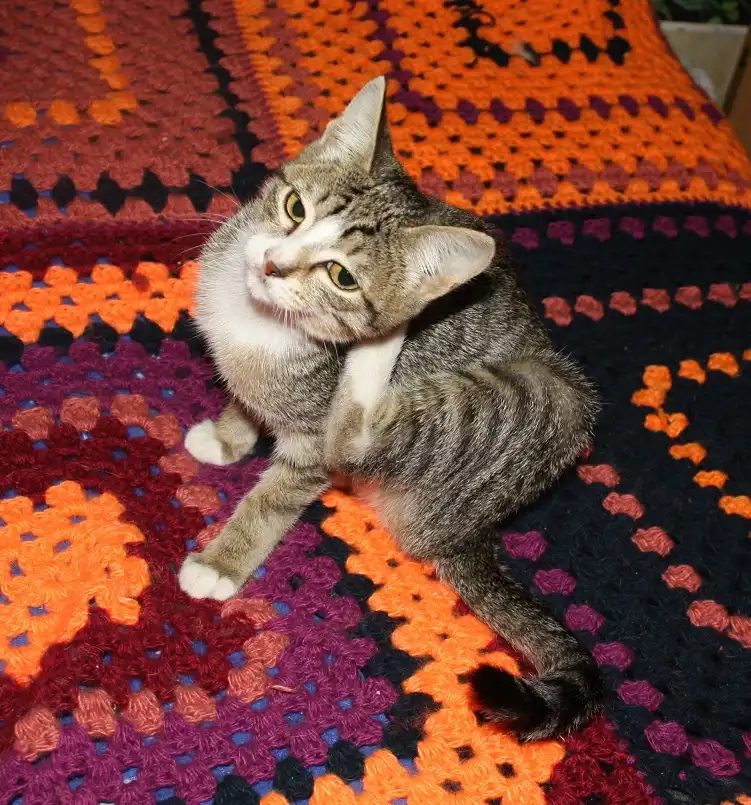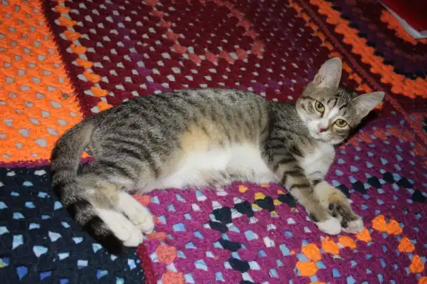 Катюшу оставили на улице когда ей не было и месяца, сейчас ей 4 месяца, она хорошо кушает и ходит в лоток. Очень озорная и бойкая девчонка, легко находит контакт с другими животными т.к. настойчиво требует чтобы с ней играли, и в конце концов все сдаются ) Любит сидеть на коленях, любит помурлыкать песни.