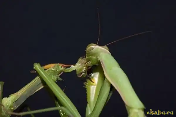 Многие слышали, что самка богомола отгрызает самцу голову после спаривания, но мало кто это видел...