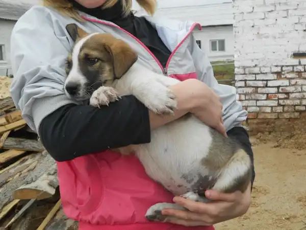 Щен с того же самого уч. хоз-ва за городом.. Мес 2, кобель. Мать большая, крепкая, ок. 60 см в холке, и, похоже, дурочка))))))) (очень грубо с ним играет, за спину хватает так, что писк стоит на всю улицу).. Кроме того, "работники нерусского типа" обращаются с ним как хотят.. поднимают за одну переднюю лапу на руки и держат на весу.. как дети..только дети и то умнее будут.. В один день приехали - мальчишка уже без хвоста, кто то отрубил,скорее всего(там почему то много собак без хвостов, а с хвостами только те, кто дикий или отпор даст - крупный) в общем... пока ребенок активный, дружелюбный и ласковый, относительно здоровый и ... живой - ИЩЕМ ХОЗЯЕВ!
