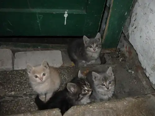 Котята в подъезде. Их 4, все красавцы. Вот только людей боятся, кормлю с ложечки на вытянутой руке или оставляю тарелку и ухожу. Любознательны. Не знаю кто мальчик, кто девочка, но кажется, что самый темный - парень, а самая светлая (персиковая) - девчушка. С серыми разобраться не могу. Соседи уже готовят "охоту на них". Их мамулю, наверное, возьму себе, давно ей уже обещала, но тогда еще не знала о ее детворе, а без мамки думаю они не выживут. Времени и возможности совсем нет, чтоб отмыть их, предполагаю, что есть блохи (как у всех бездомышей). Ищут своих новых родителей.