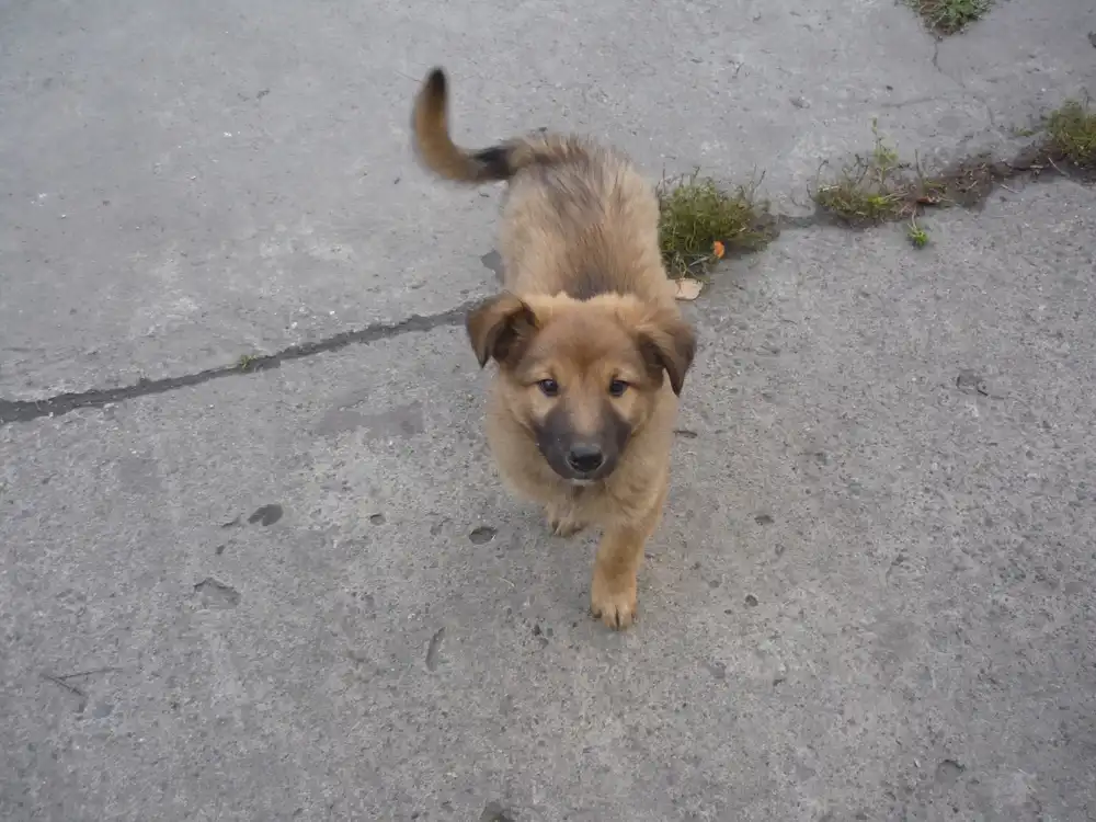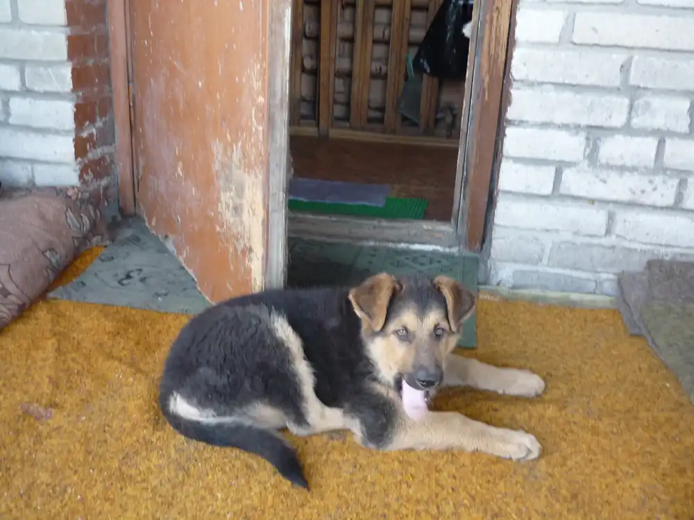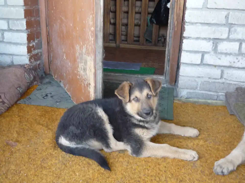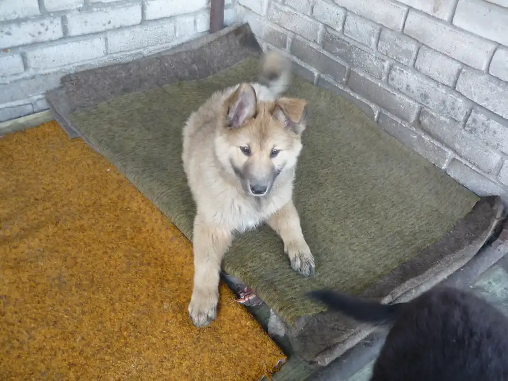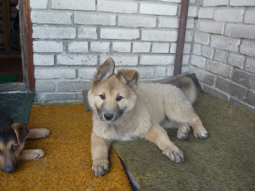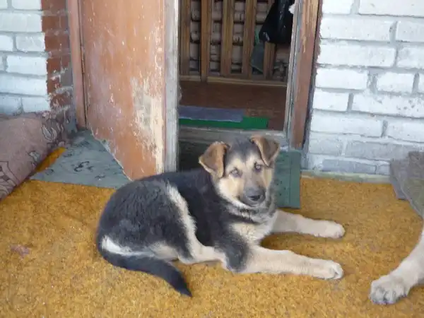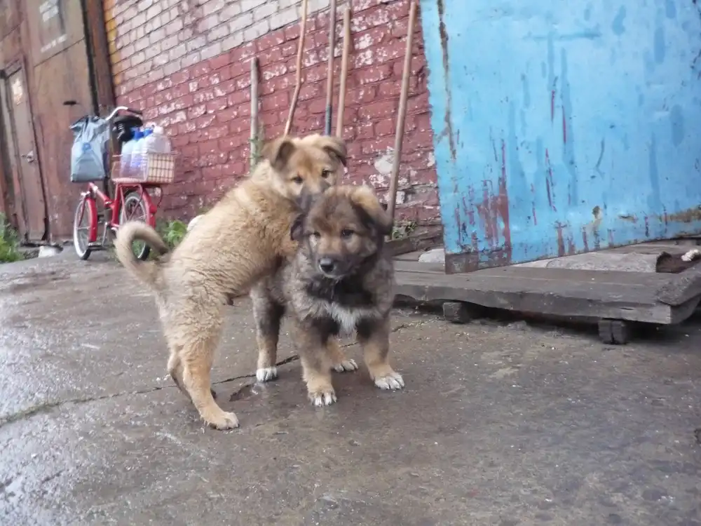 Щенкам по 2 месяца, живут в будке на улице. Уже хорошо несут службу, лают и не пускают чужих на территорию.