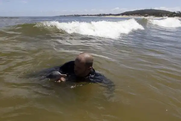 Спасатели нашли дельфиненка, которого выбросили на берег еще с пуповиной и пытаются его спасти.