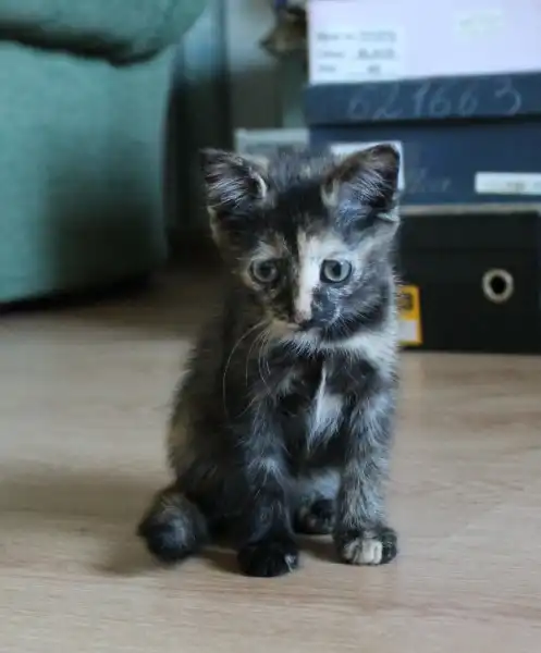 Кошку подобрали, отогрели, привели в порядок.