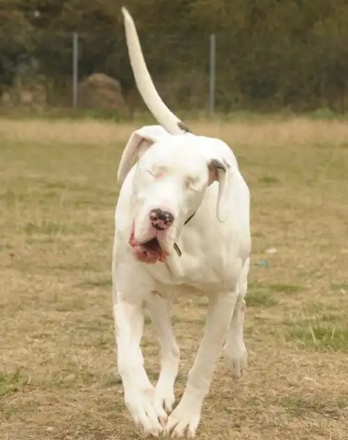Собака по имени Лила была щенком, когда ей поставили диагноз - полное отсутствие зрения. Она в то время жила с датским догом, который взял ее под свое "крыло". Собаки до сих пор гуляют только вместе, а Лила ни на шаг не отходит от своего друга, дога по кличке Мэдисон, который не сводит с нее глаз.