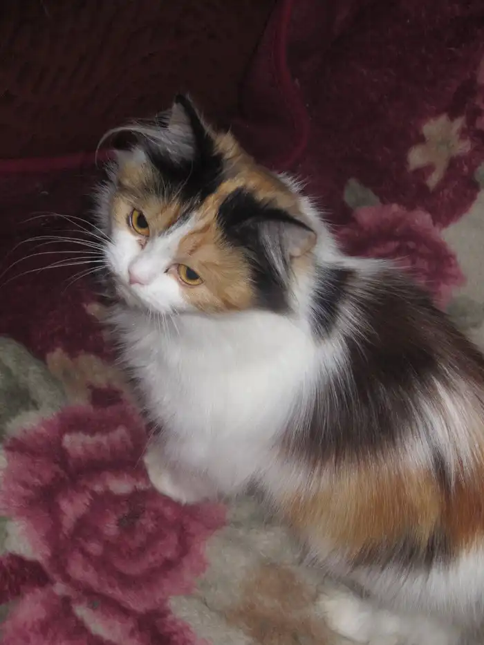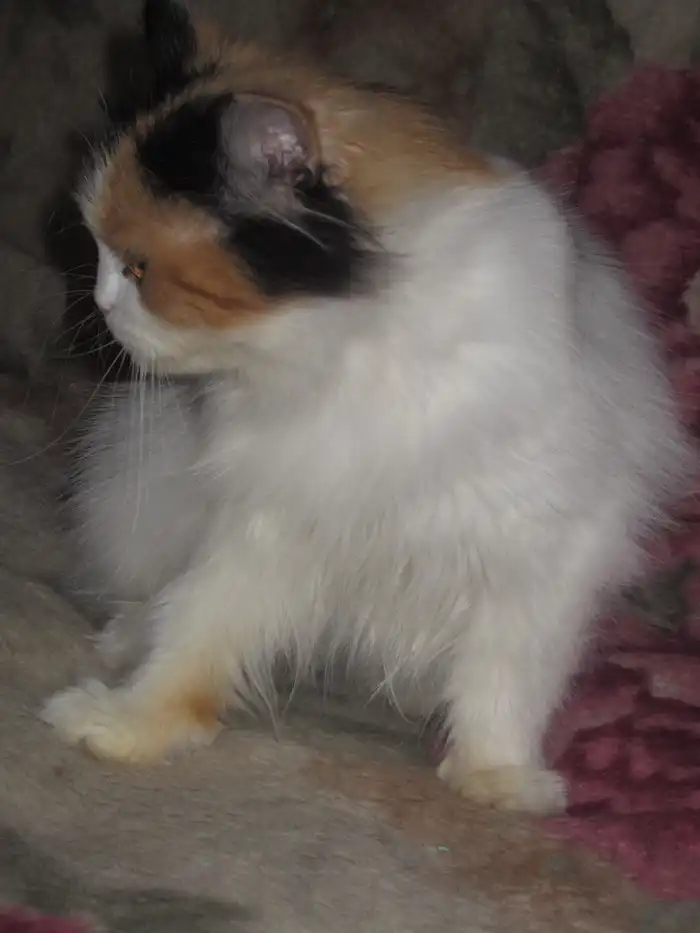 Ищет дом найденная молодая пушистая трехцветная кошка, судя по морде в роду были персы. Здорова, лотком пользуется.