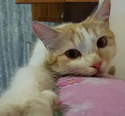 Что вам рассказать про внешность? Кошечка ухоженная, шёрстка средней длины бело-рыжего нежного окраса. А глаза - крупные, выразительные, янтарного благородного цвета... Кошечка тщательно следит за состоянием шкурки. Очень неприхотливая, ненавязчивая, умная и привязанная к людям.