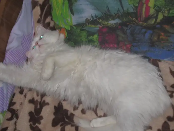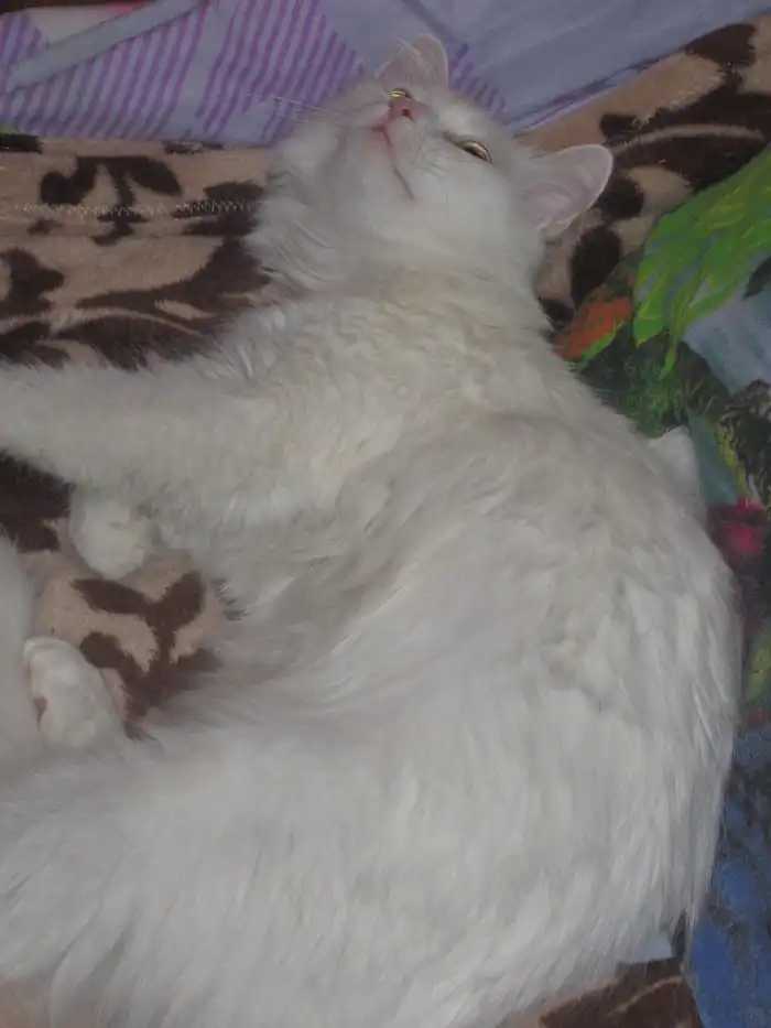 Вот такое чудо было летом найдено на улице, охотилось на воробьев, по-видимому, этим и питалось. Охотница уж она отличная. Судя по всему, была домашней, на улице пострадала от непривычной пищи... сейчас кошечка в хорошем состоянии, активная, подвижная, при том послушная. Красавица, шерсть длинная, ангорская. Молодая еще. Глазки зеленые. Ищем хозяина :)