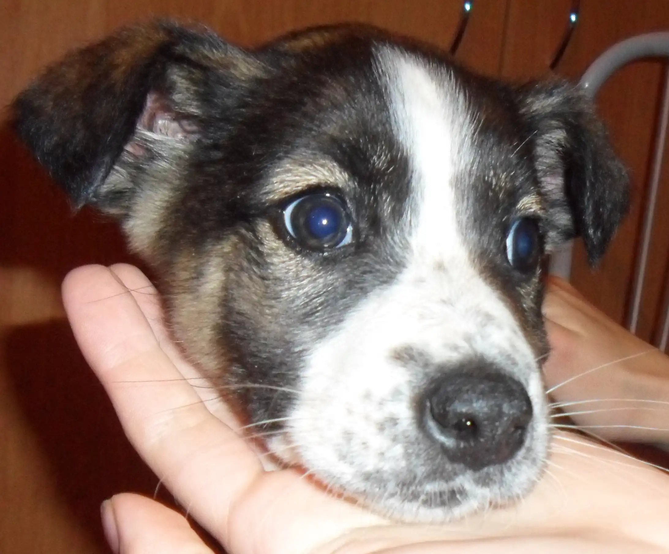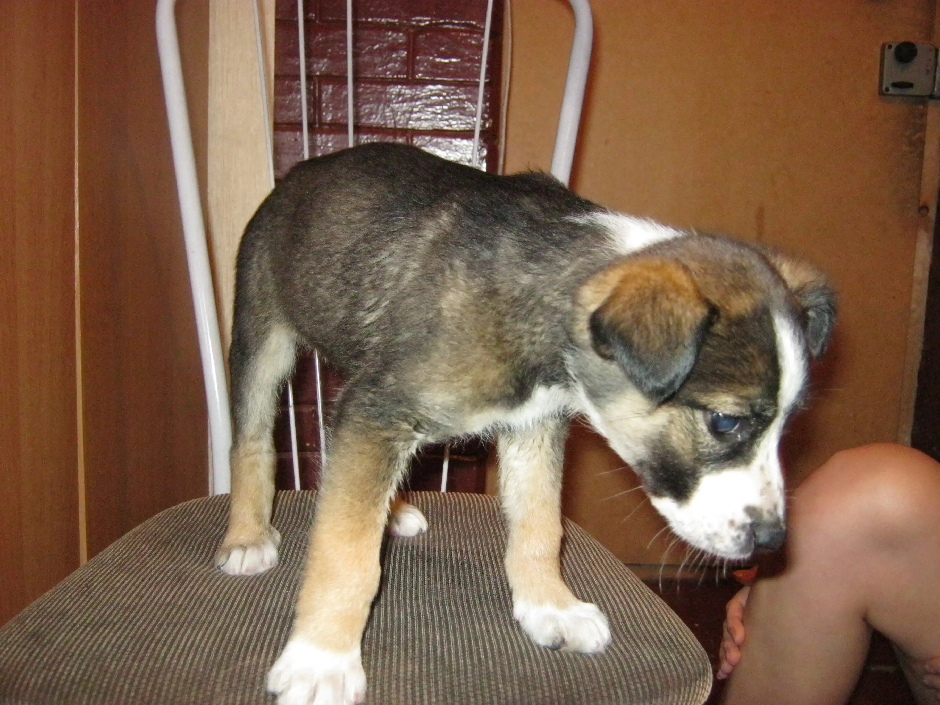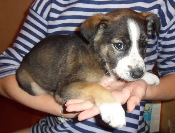 Найден щенок. Девочка, дворняжка, возраст от полутора до двух месящев(не больше), окрас красивый, шерсть без проплешин. Щенок очень ласковый, людей пока боится, но быстро привязывается. Кушает все, в туалет просится. Собака вымыта, накормлена спать уложена- полностья готова ко встрече с хозяином!