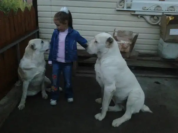 Порода Алабай, девочка, добрая но идёт не ко всем. На фото слева.