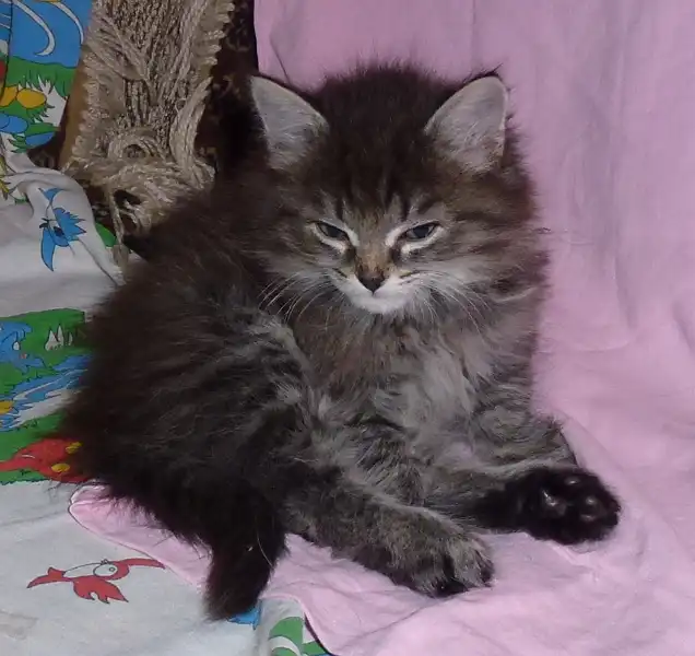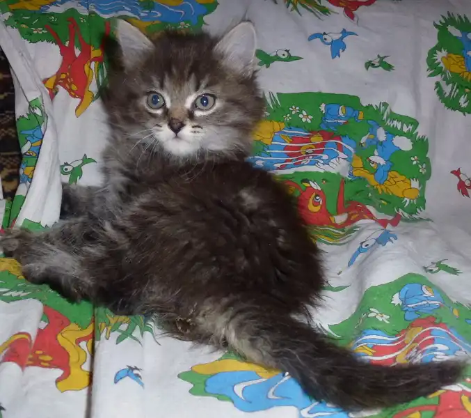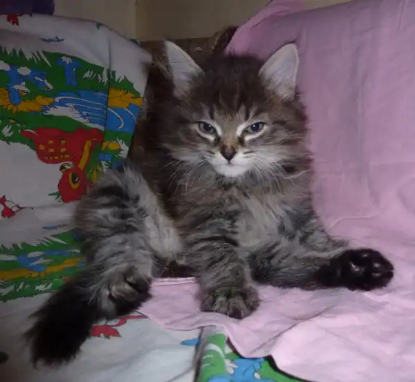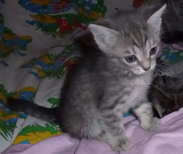 Этих котяток нашли на Ц. Рынке. Знакомьтесь - тёмный пушистик - это мальчик, а серенькая полосатенькая малышка - это девочка.
