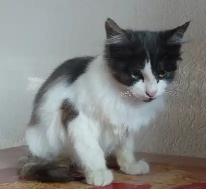 Этот замечательный котик был найден в подвале. Мальчику 4 месяца; он самостоятельный, здоровый, любознательный и общительный кот. Сразу сходил в лоток; не шумный, очень спокойный и доверчивый котишка. Шёрстка тоненькая, мягонькая и пока что средней пушистости. Но котёнок ослаблен холодом и голодом, поэтому в будущем при должном уходе из него вырастет знатный и благородный домашний любимец. Из-за нежно-молочной окраски получил имя Милки. Но теперь он в чистоте и безопасности, вымытый и согретый ждёт хозяев. Отдаётся в добрые руки с условием последующей кастрации (льготные условия).