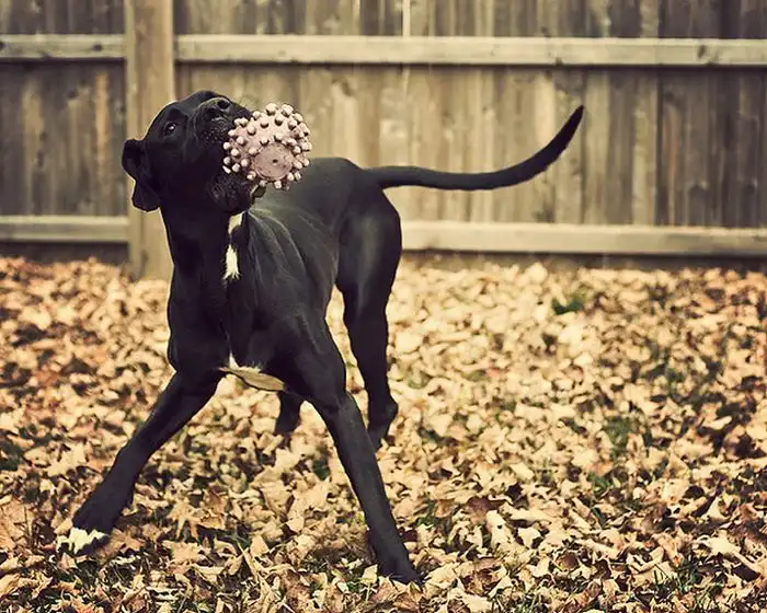 Собаки играют в листьях