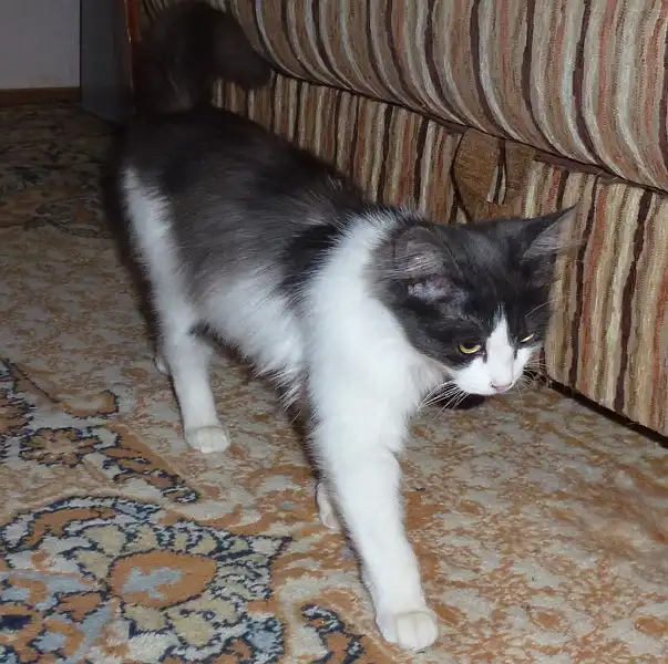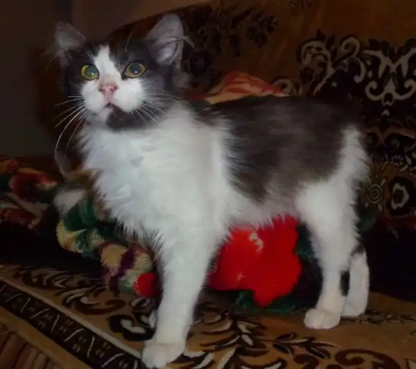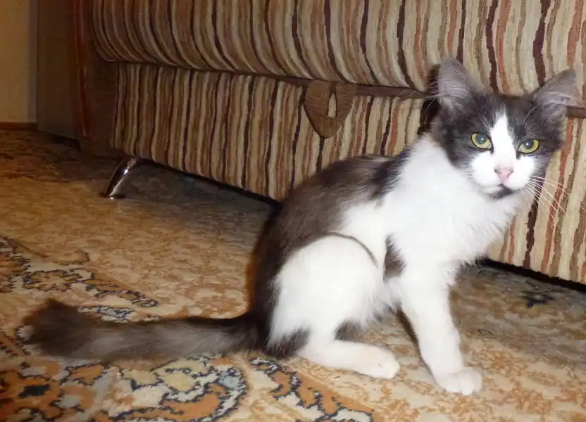 Его зовут Том, потому что напоминает одноимённого героя из "Тома и Джерри". Ему 4 месяца. Очень спокойный, но любит играть с котятами и игрушками; всеядный, кушает аккуратно, ласковый, но ненавязчивый. Почти не мяукает (молчаливый характер), зато часто мурчит. Нежная пушистая шёрстка у него всегда чистая, котик аккуратист и чистоплотный. Полностью здоров, лотком пользуется безукоризненно.