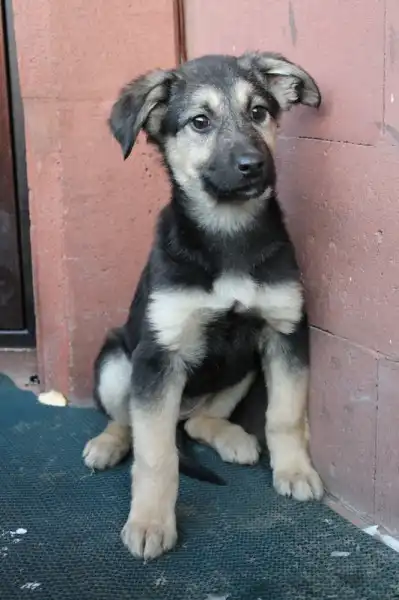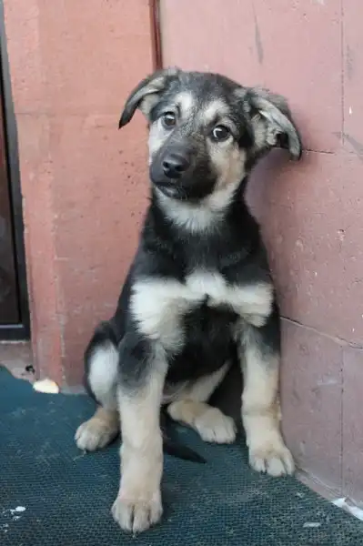 Девочка похожа на овчарку, крупная, вырастет до 60 см в холке. Спокойная, ласковая, гавкает басом. Любопытная.