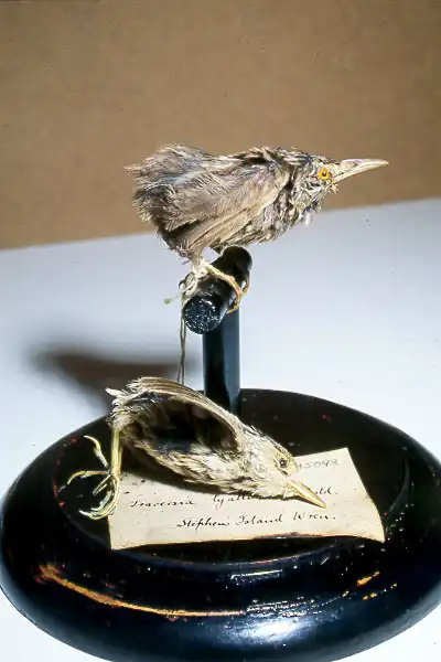 Так обстояли дела до 1894 года, когда на острове был установлен маяк. Его смотритель, Дэвид Лайэлл, захватил с собой для компании кота по имени Тибблс. Можно представить себе восторг Тибблса, когда он обнаружил, что остров полон аппетитных птичек, которые не умеют летать. Неудивительно, что он тут же принялся за дело, атакуя крапивников везде, где только встречал их. О новом занятии кота смотритель узнал после того, как тот стал приносить своему хозяину трупики птиц. Лайэлл сохранил несколько и передал их ученым. В 1895-м появилось научное описание этого вида, названного Xenicus lyalli (Новозеландский крапивник). Но одновременно с открытием этот вид птиц был объявлен вымершим.