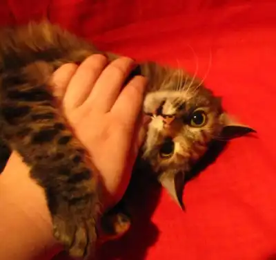 Девочка юная (около 5 месяцев), очень красивая и очень пушистая (ну натуральная белка!), имеет интересный окрас шёрстки - классическая "полосатка" с огненно-рыжими вкраплениями.