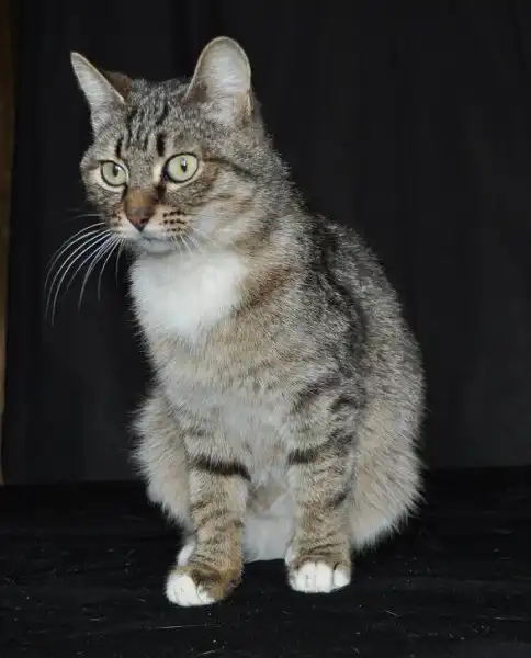 Очень красивая, зеленоглазая, полосатая с белым кошка Акация или просто Кася долго жила на улице, пострадала от собак. Сейчас ранки от собак уже заросли шерсткой, кошка поправилась, потолстела, и начинает искать своего хозяина. Очень ласковая, ручная, на все готова, лишь бы ее брали на руки и гладили. Питается сухим кормом и, несмотря на свое долгое уличное прошлое, правила поведения в квартире знает. Возраст кошки 4-5 лет. Стерилизована.А на кончике хвостика у нее белая кисточка.Телефон 8 923 410 24 17, 8 906 947 31 81