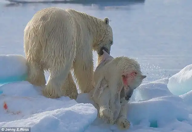 "Такое внутривидовое поведение всегда наблюдается среди хищников, - говорит она. - Однако в последнее время среди белых медведей оно наблюдается все чаще, в особенности в тех случаях, когда они остаются на суше из-за отсутствия льда в результате глобального потепления".