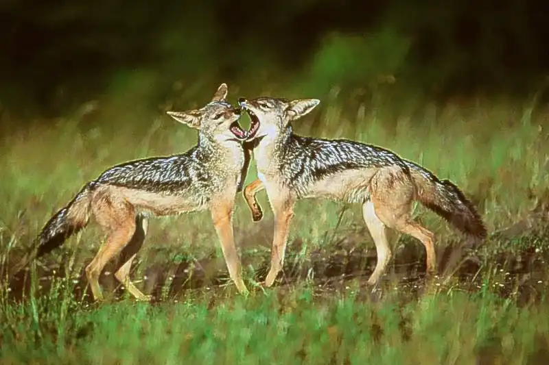 ШАКАЛЫ (Thos), род хищных млекопитающих семейства псовых, или волчьих (Canidae), часто включаемый в состав рода волков (Canis). Эти животные широко распространены в Африке и Азии и до сих пор встречаются на юго-востоке Европы. Обычно шакалы связаны с равнинными степями и полупустынями, однако в Гималаях поднимаются до 3700 м над у.м. Внешне они напоминают лисиц – заостренной мордой, стоячими ушами и пушистым хвостом, но по сложениюкрупнее. Животные не особенно резвые, однако при необходимости они могут бежать со скоростью до 56 км/ч. Образ жизни шакалов ночной, скрытный, поэтому они редко попадаются на глаза людям.