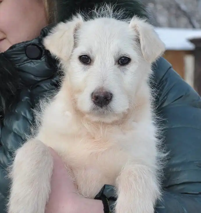 Вот такой щенок, мальчик ищет дом. Малыш красивого, светло кремового окраса. Возраст примерно 2-2,5 месяца. Вырастет крупным и мощным псом. Уже сейчас проявляет задатки грозного охранника, лидер в группе щенков. Живёт на улице, но с удовольствием стал бы охранять вверенную ему территорию.