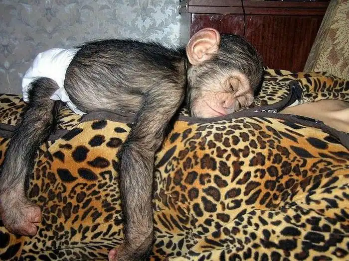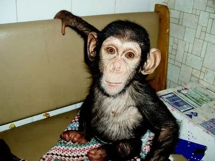 Два года назад в одном из российских зоопарков мама шимпанзе почему-то отказалась от своего детеныша.