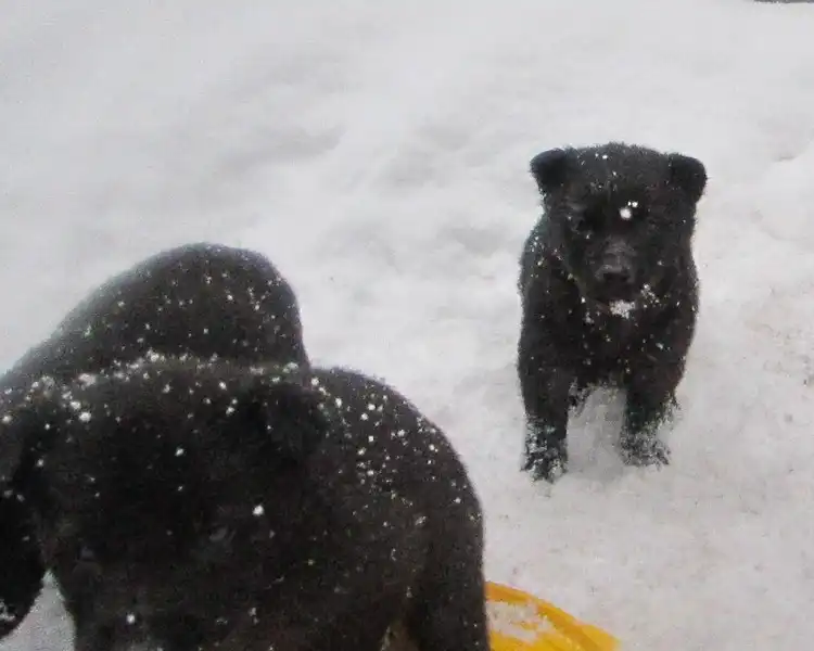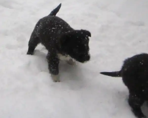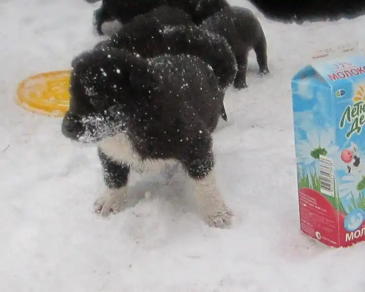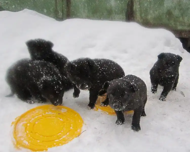 Отдам только в добрые и надежные руки 6 щенят. Щенки родились 07.12.2011г. от бездомной собаки среднего размера. Окрас у пятерых черный, у шестого черный с белой грудкой и лапками. Двое малышей не очень крупные и короткошерстные, подойдут для квартиры, рост в холке у них будет не больше 45-47см.. Очень мерзнут!!! Остальные щенки будут ростом от 50 до 60см.