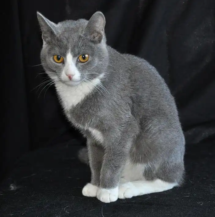 Котик Эмилио, голубой биколор с очень красивыми оранжевыми глазами, был найден в подъезде с обмороженным носиком. Котик очевидно бывший домашний, очень ласковый, отлично знает правила поведения в квартире, пользуется лотком, питается готовыми кормами. Носик пролечен, осталось небольшое пятнышко. Окрас шерсти котика очень ровный, не дымчатый, а именно с голубым отливом, это видно и на фото. Котик еще худенький, но у него хороший аппетит, он начал набирать вес. Возраст примерно 8-9 мес. Отдается под кастрацию, имеет скидку 60 процентов.