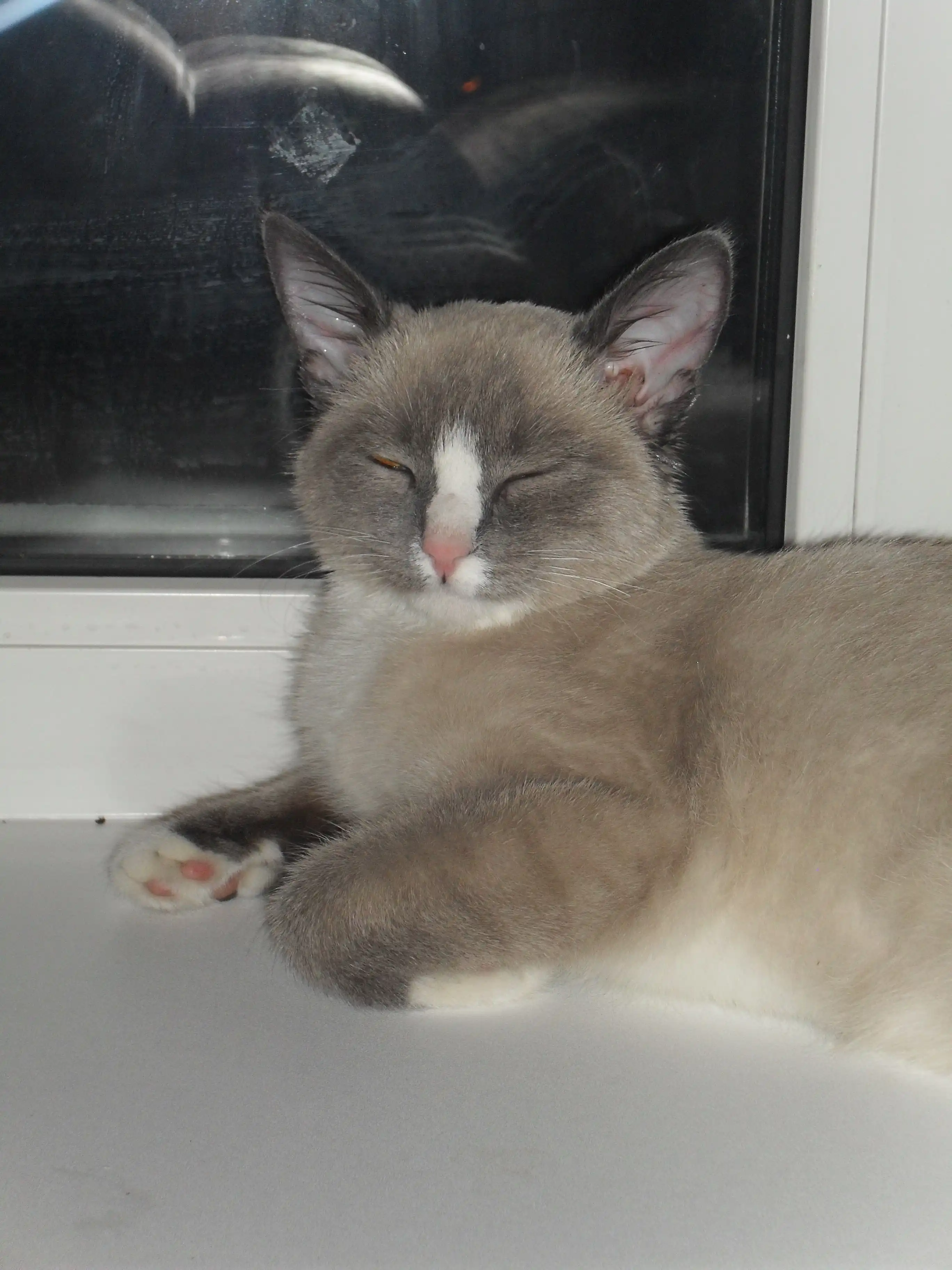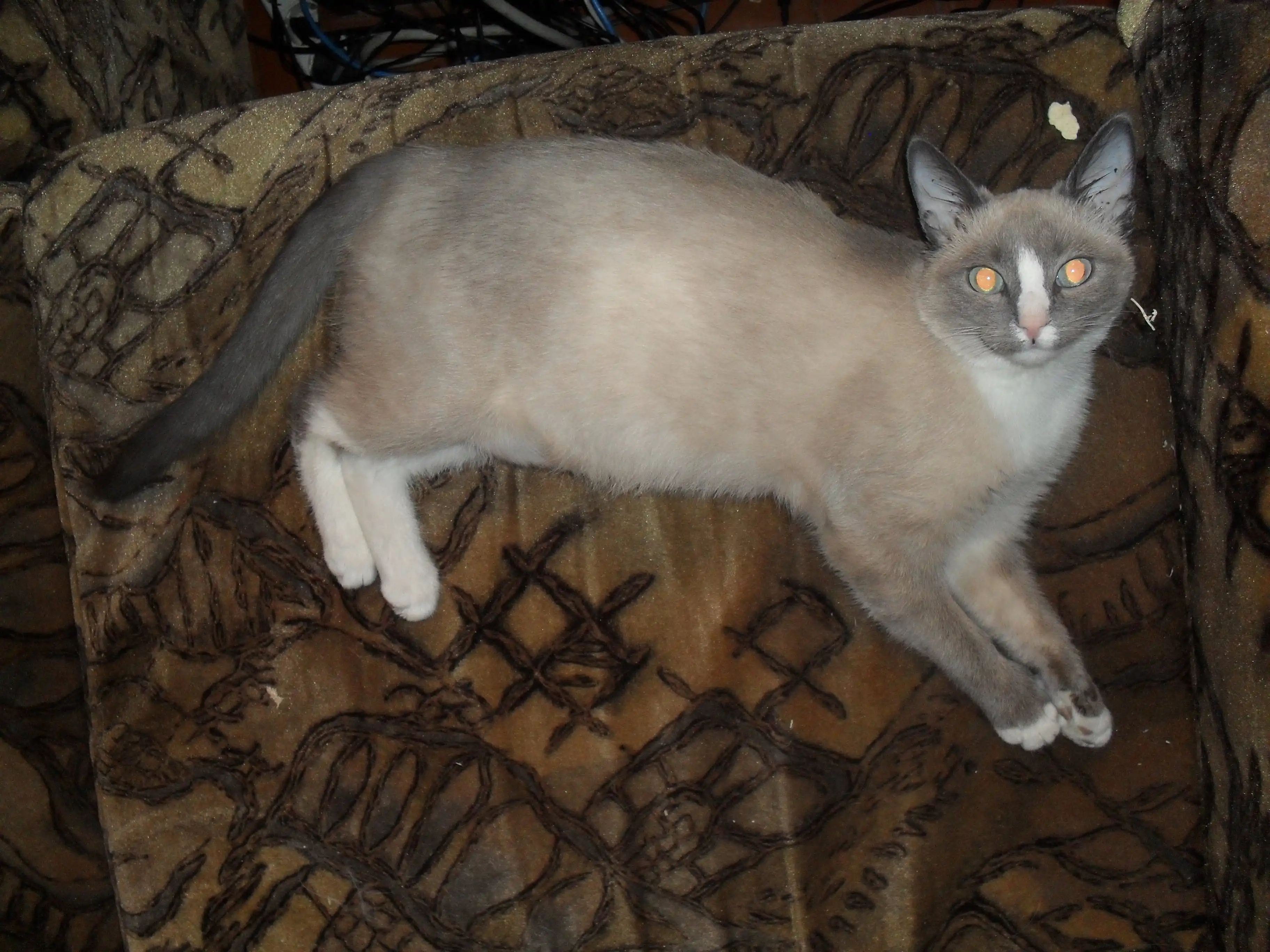 молоденькая кыса, около 8 месяцев, сиамского окраса с голубыми глазами,