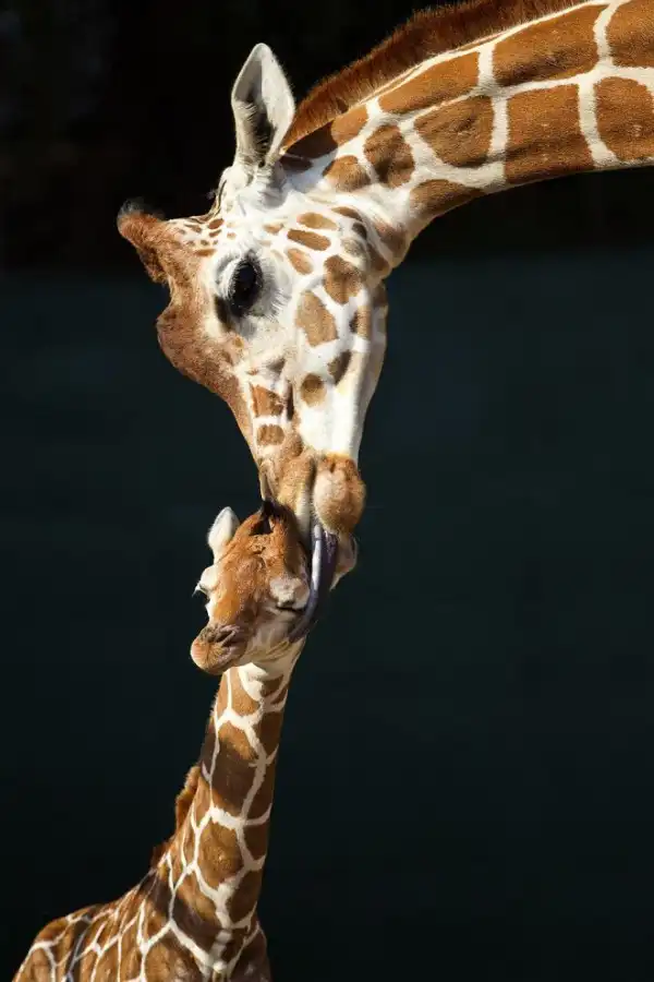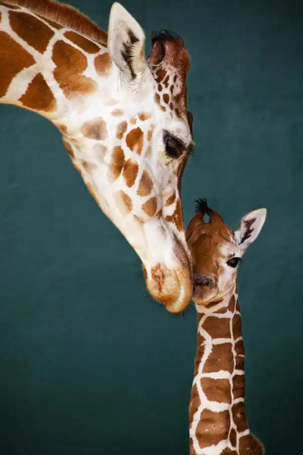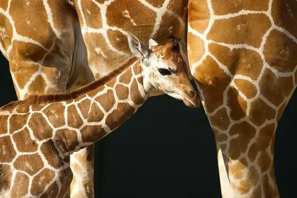 Период беременности жирафов длится около 15 месяцев, а молоком детеныш кормится примерно год.