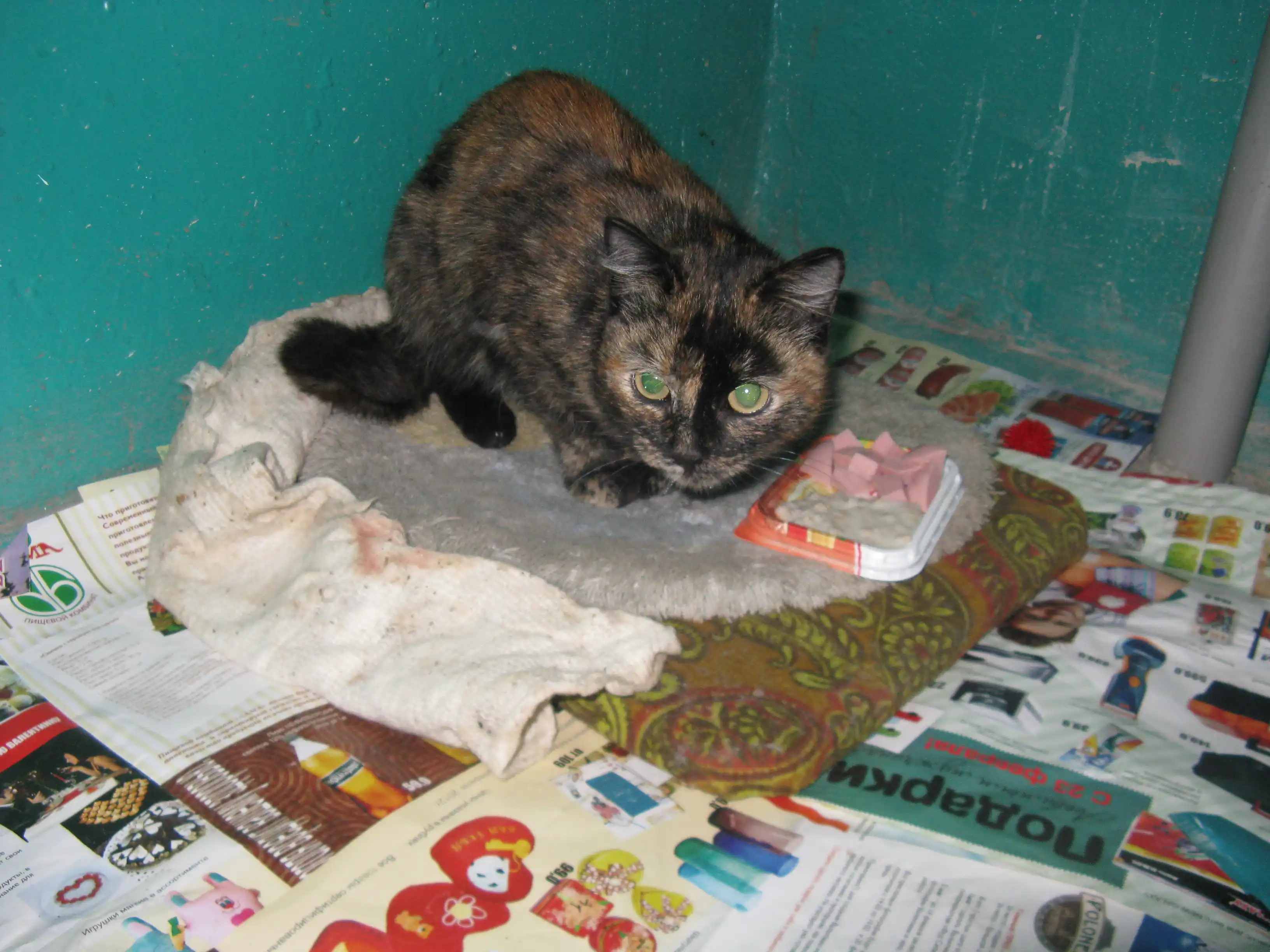 В подъезде найдена молоденькая кошечка, на вид 5 месяцев. Живет там