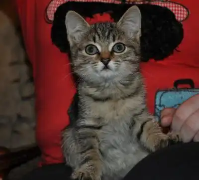 Общительная и мурчащая полосатая девочка ищет постоянных любящих хозяев! Умничка сама подружилась с лоточком, ходит только туда. Кушает и готовые корма, и кашку с молочком. Со здоровьем проблем нет!