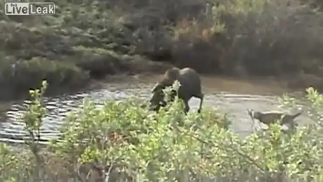 Стая голодных волков атаковала взрослого лося и маленького лосенка. Второму не повезло.