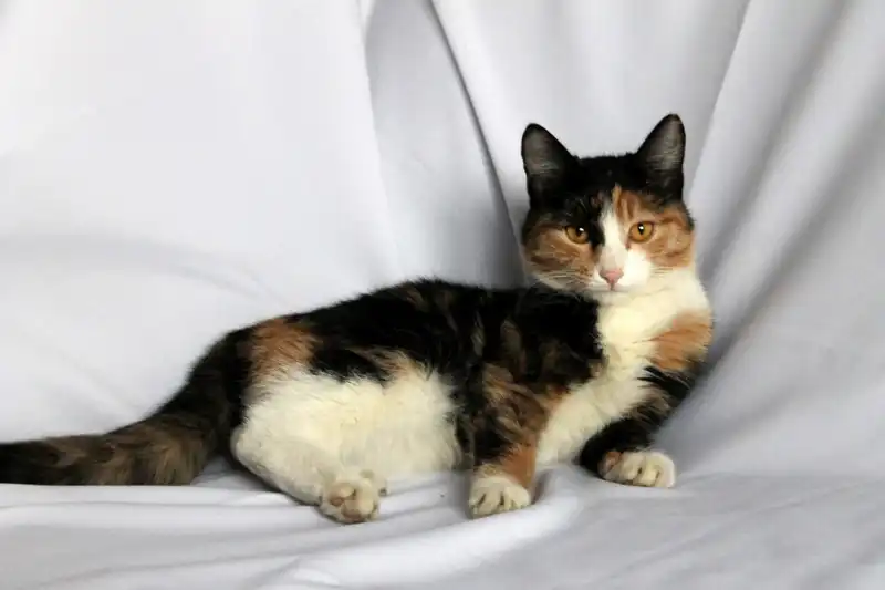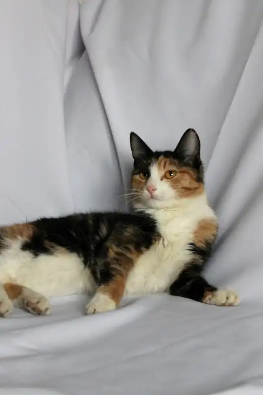 Эльза совсем молоденькая кошка, ей 7-8 месяцев. Она ласковая и нежная, с удовольствием проводит время рядом с человеком.