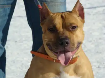 Коротенько о самой Дези. Ей примерно 2,5-3 года. Обычной пито-стаффячьей внешности и характера. Людей, несмотря ни на что, любит и верит им. Опасается детей, может зарычать (в прошлой семье ребенок поиздевался над собакой вволю!). В семью с маленькими детьми собака отдаваться не будет. К себе подобным никакой любви не испытывает, особенно не любит маленьких верещащих собачек. Обожает активные прогулки! Станет незаменимым членом семьи и компаньоном для человека, уважающего активный отдых. Но при всем при этом, дома она довольно спокойна. Пока очень плохо ходит рядом на поводке. Так что воспитанием заняться придется плотно. Очень бы хотелось видеть хозяином Дези человека, имеющего опыт общения с подобными собаками.