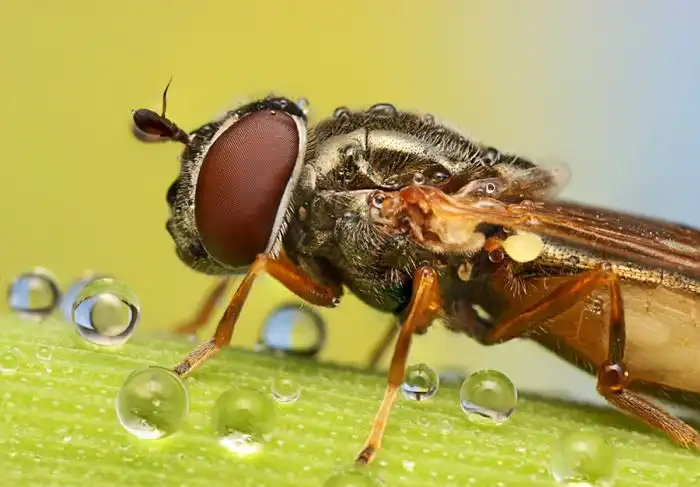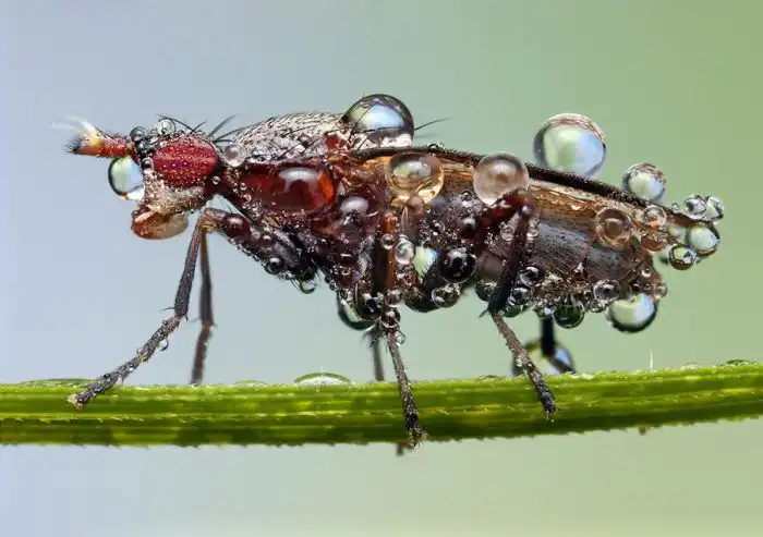 Потрясающие макрофотографии насекомых, которые покрыты утренней росой.
