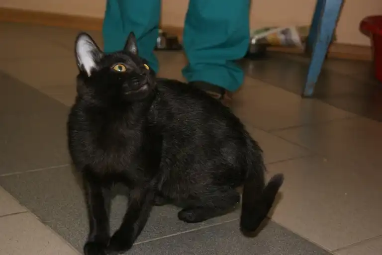 Ласковые, красивые блестящие мини-пантеры! Кушает сухой лечебный корм. В лоток ходят обе.