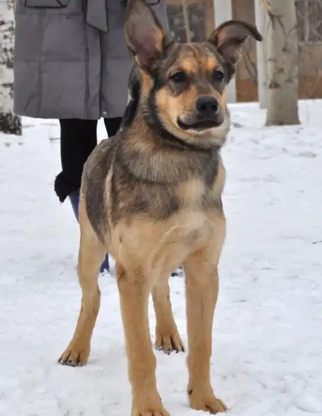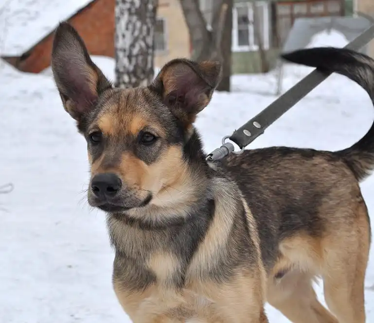 Чудной щенок с большими ушами очень хочет в свой дом.