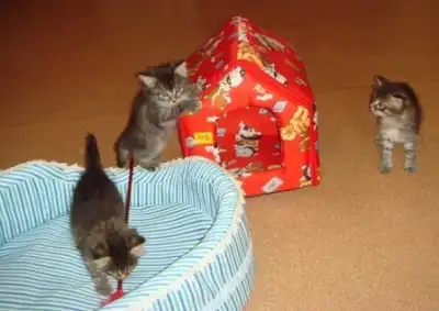 Котята здоровы, игривы, похожи друг на друга как три капли воды, 2 сестрички и братик. Возраст 1,5 мес. Тел. 8-952-808-88-18, Инна.