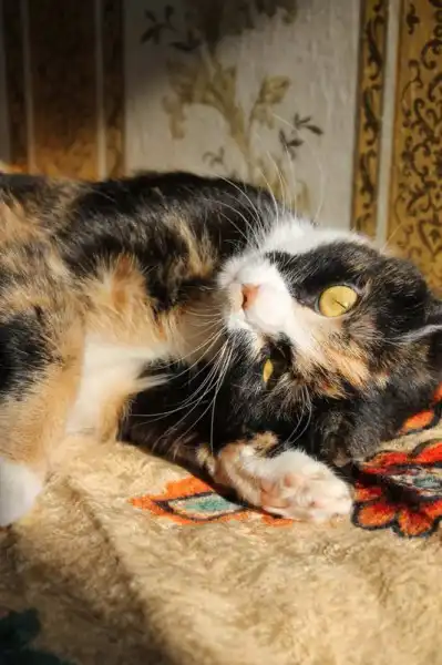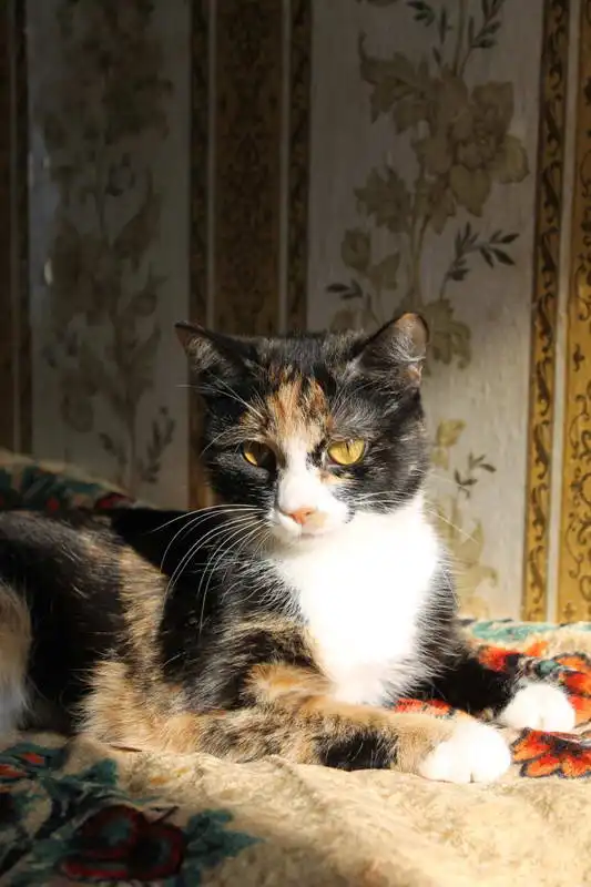 Эта кошечка с лета скиталась по подвалам и подъездам, но ей повезло и её на время приютили, сейчас Пеструшечка отмыта, стерилизована, приучена к лоточку. Кошечка очень милая, добрая ладит с другими кошачьими, сейчас дружит и играет с котом тоже проживающим на этой передержке. есть корм, но может кушать и натуральную еду.