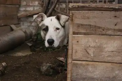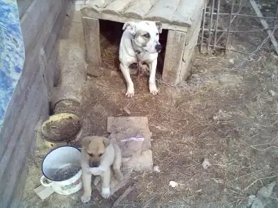 За городом ощенилась собака. Собака хозяйская, цепная, но никому нет дела.. Прошлый помет задавила, а одного люди не хотели отдавать. Теперь отдают этих. Им около 2-х месяцев, светлый поактивнее и пошустрее, оба контактные, ручные. От очень ОЧЕНЬ крупных родителей. Мать плотной конституции, мощная, в холке 65 см.., а отец еще крупнее, около 70 см в холке.