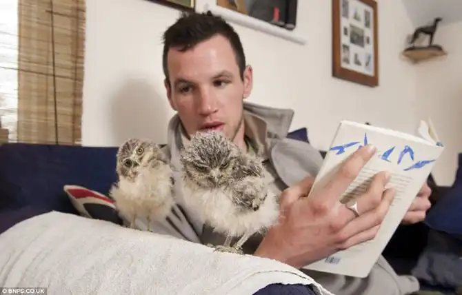 Двух сычей (птица семейства совиных) по имени Линфорд и Кристи поселил у себя дома работник английского парка.Сычата, оказавшиеся сиротами, были выведены в инкубаторе около 6 недель назад в парке Hawk Conservancy Trust в графстве Хемпшир. За ними взялся ухаживать смотритель этого парка Джимми Робинсон. Так как в этот период им необходимо постоянное питание, он поселил их у себя дома.