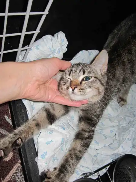 Фаня – классическая полосатка с рыжим носиком и очень выразительными глазами.