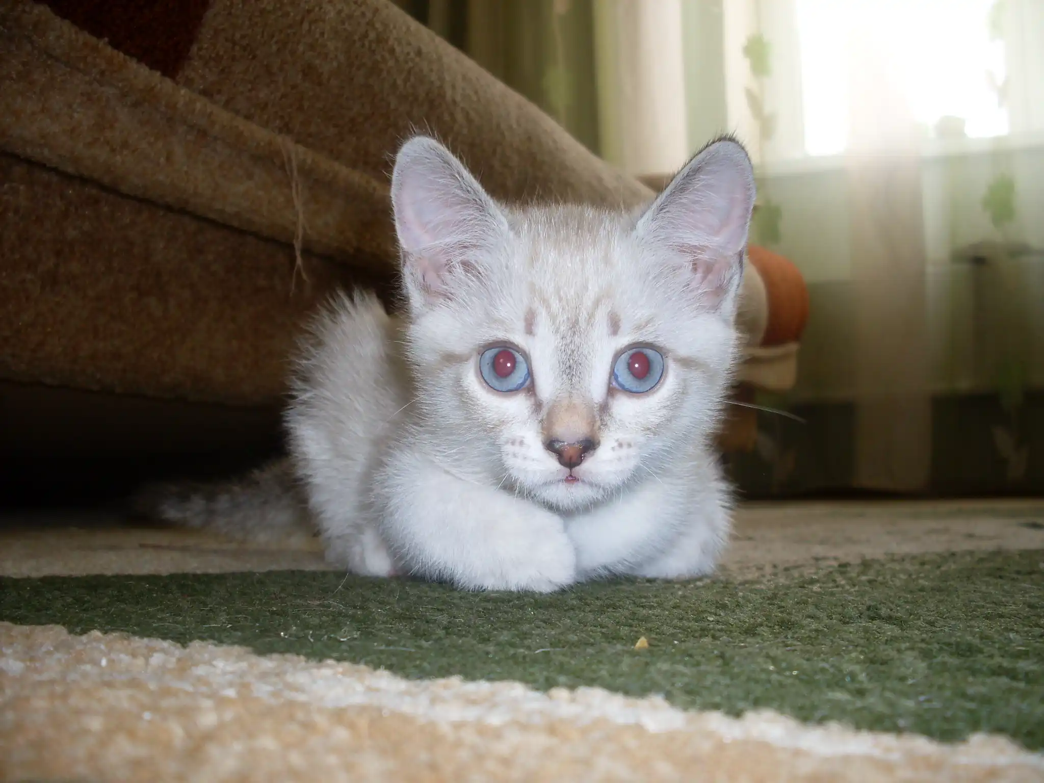 Возраст: 1,5 мес (24,02,12), родился от домашней, ухоженной кошки. Окрас: белый, ушки и хвостик серенькие.
