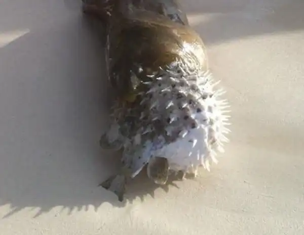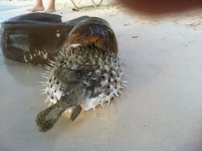 Мурена собралась перекусить рыбой-ежом, но не учла того, что она может раздуться в экстренной ситуации.